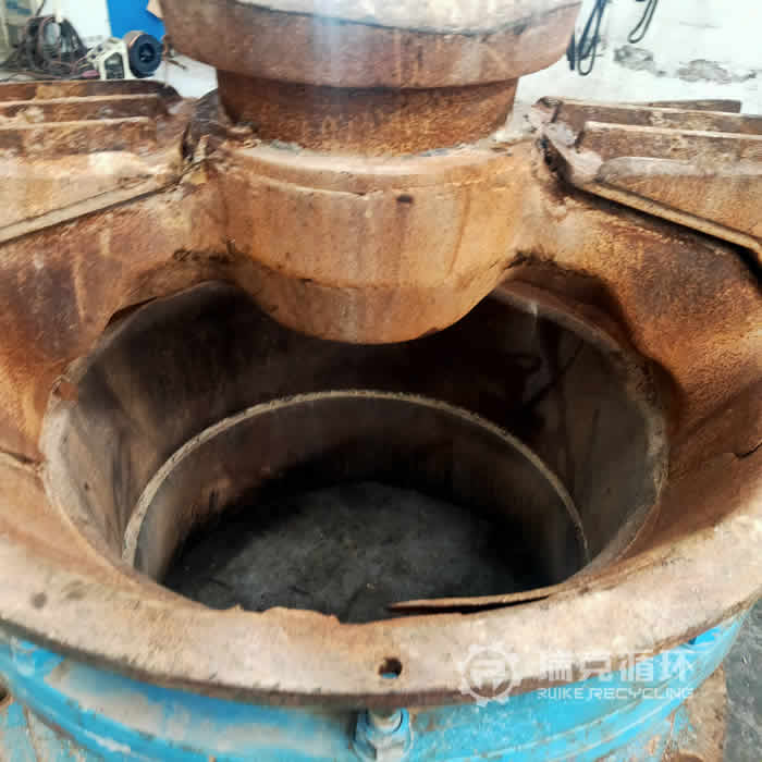 经过优化设计的加强型架体结构、两端支撑的“简支梁”主轴结构、动压润滑的铜套结构、灵敏可靠的过载保护系统,可确保设备在硬质矿物岩石的破碎长期稳定运行。上机体基本完好,我们只是对护板进行更换处理同时更换顶轴承,上架体如下图所示: